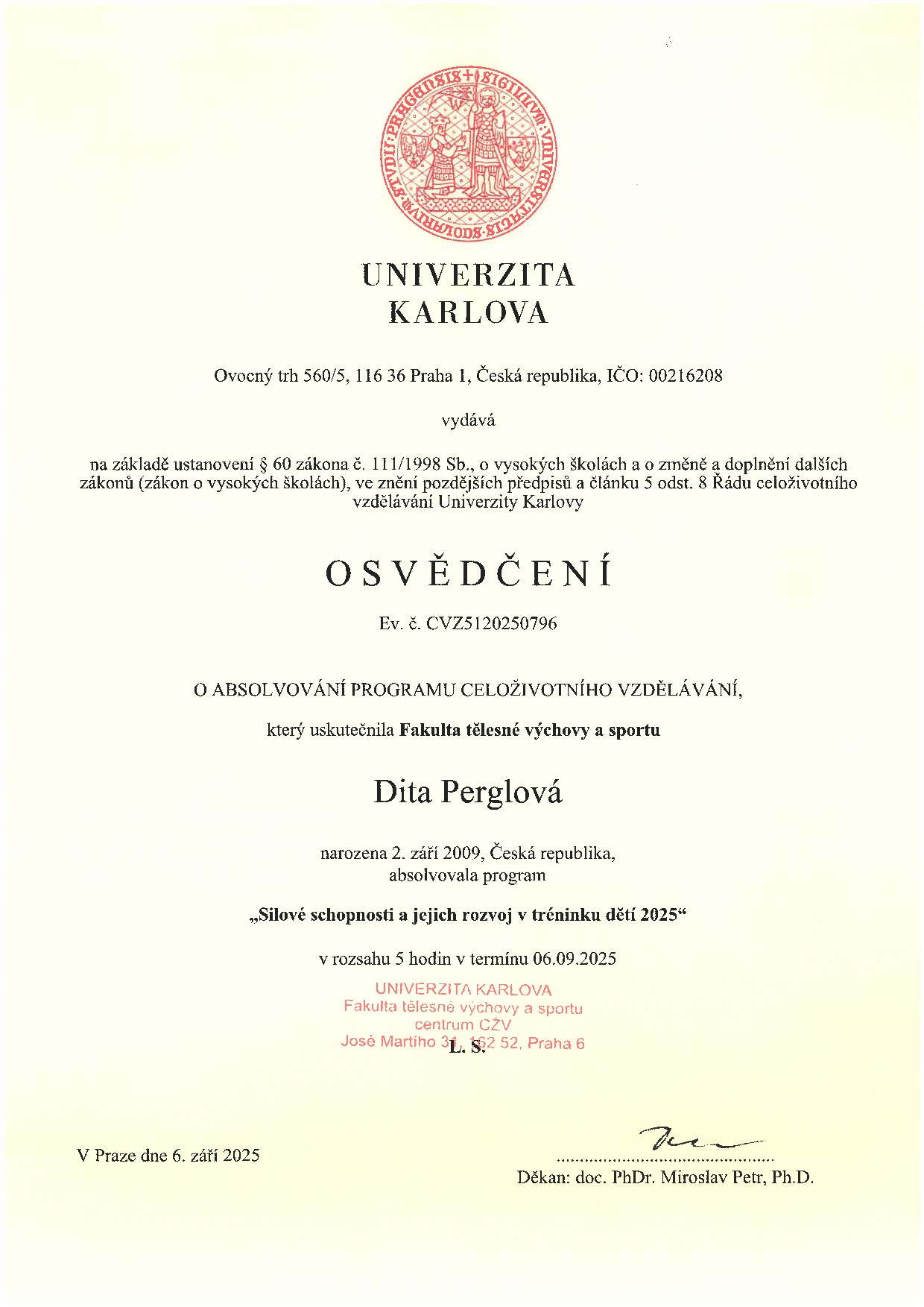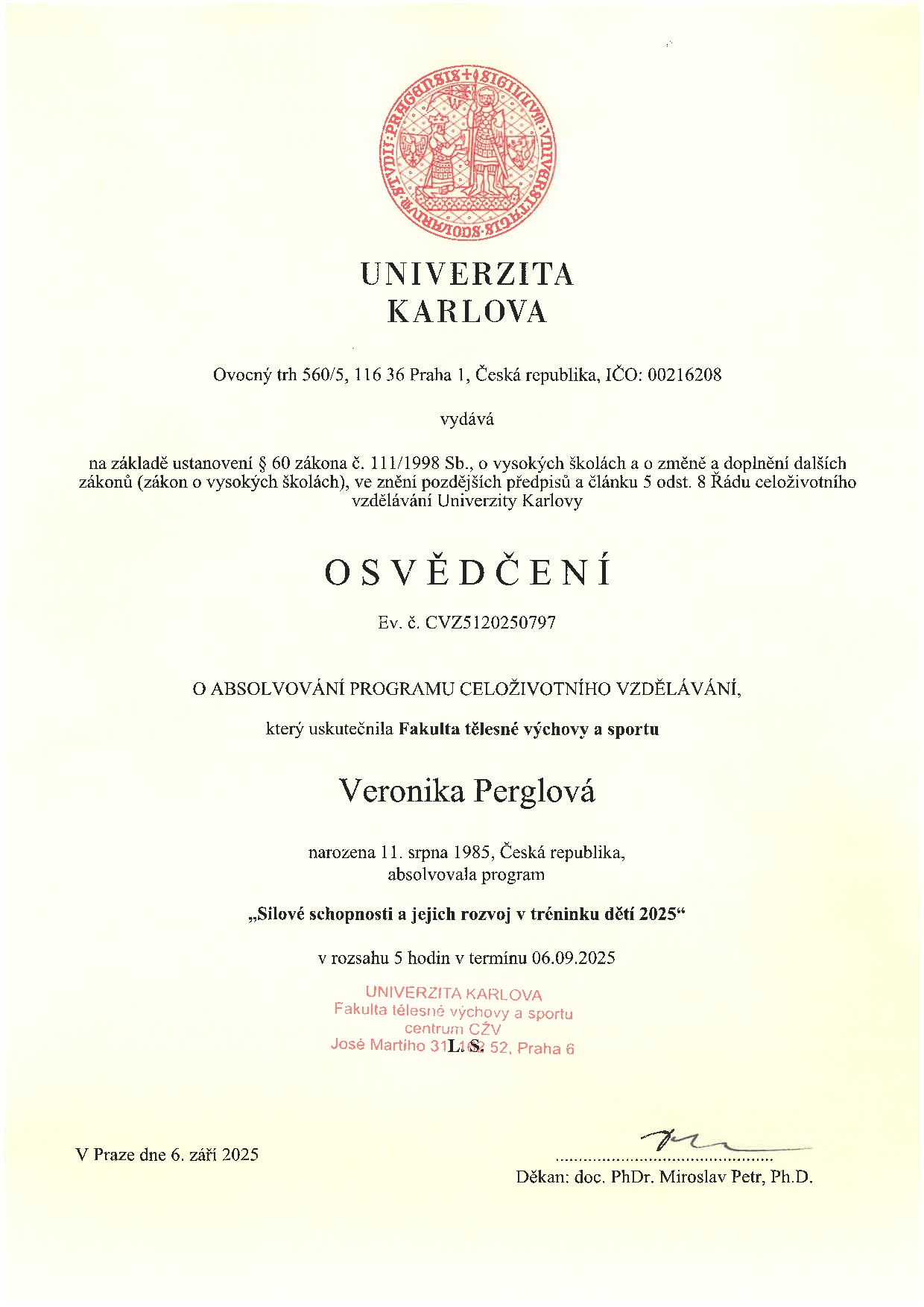 Nově proškolená : ,,Silové schopnosti a jejich rozvoj v tréninku dětí,, -Osvědčen
